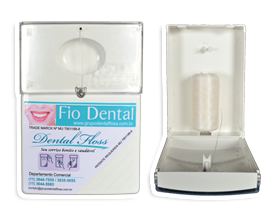 Porta fio dental, fixo em lugar a sua escolha, com refil profissional de reposição imediata da marca Dental Floss com 300 e 500 mts.